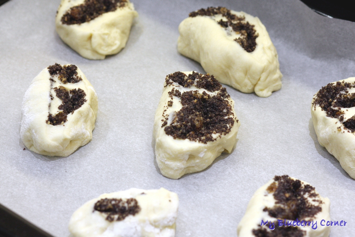 Pokrojone ciasto ułożyć na 2 dużych blachach wyłożonych papierem do pieczenia.