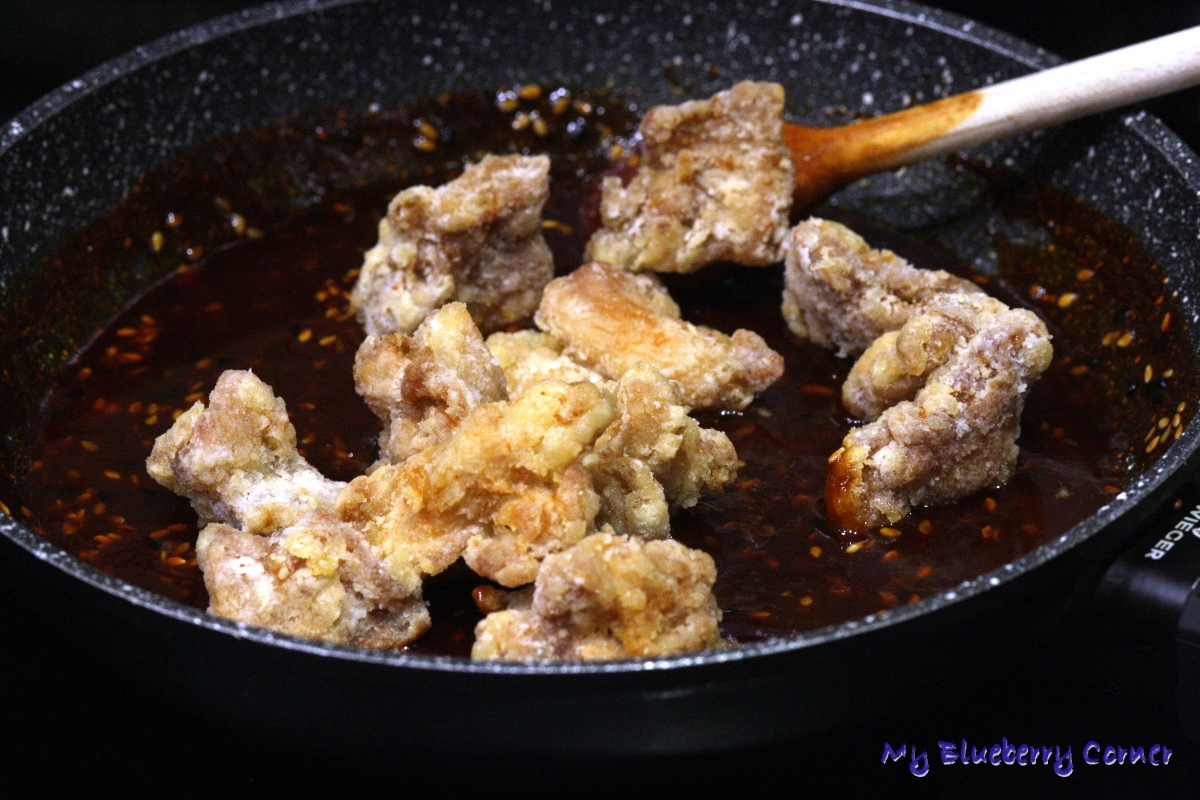 Koreański kurczak Dakgangjeong jest chrupiący, słodki i pikantny. Udka z kurczaka w tym przepisie sprawdzają się bardzo dobrze, po usmażeniu pozostają one bardziej soczyste niż inne kawałki kurczaka. W Korei Południowej kurczak Dakgangjeong jest daniem ulicznym, podawanym w papierowym kubku lub rożku oraz wykałaczką. Ciekawy smak potrawie nadaje koreańska pasta gochujang, pikantna, słono-słodka koreańska pasta z fermentowanej czerwonej papryki, ale kupić ją nie jest łatwo. Tak samo jak ryżowe wino do gotowania shao xing, pastę gochujang na pewno kupicie w sklepach azjatyckich, w supermarkecie lub dobrze zaopatrzonym sklepie osiedlowym znajdziecie ją w dziale kuchni świata, dostępna jest także w sklepach internetowych.