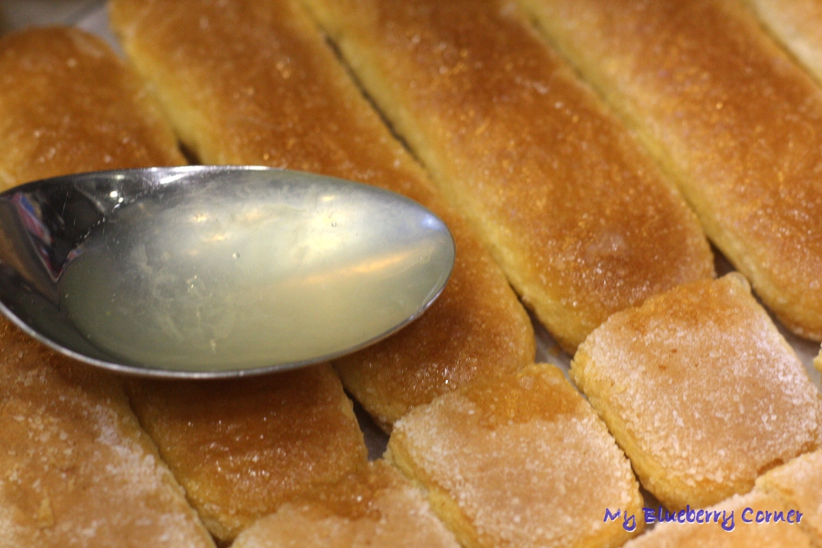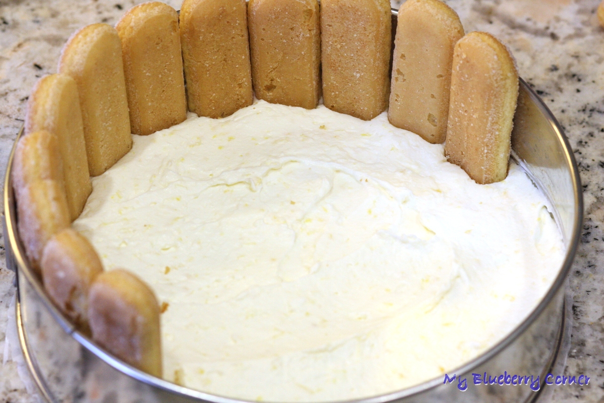 Wyłożyć drugą warstwę zamoczonych w lemoniadzie biszkoptów, ⅓ kremu i ostatnią warstwę mokrych biszkoptów i ostatnią warstwę kremu. Formę z deserem schować do lodówki na 6 godzin, a lepiej na całą noc.