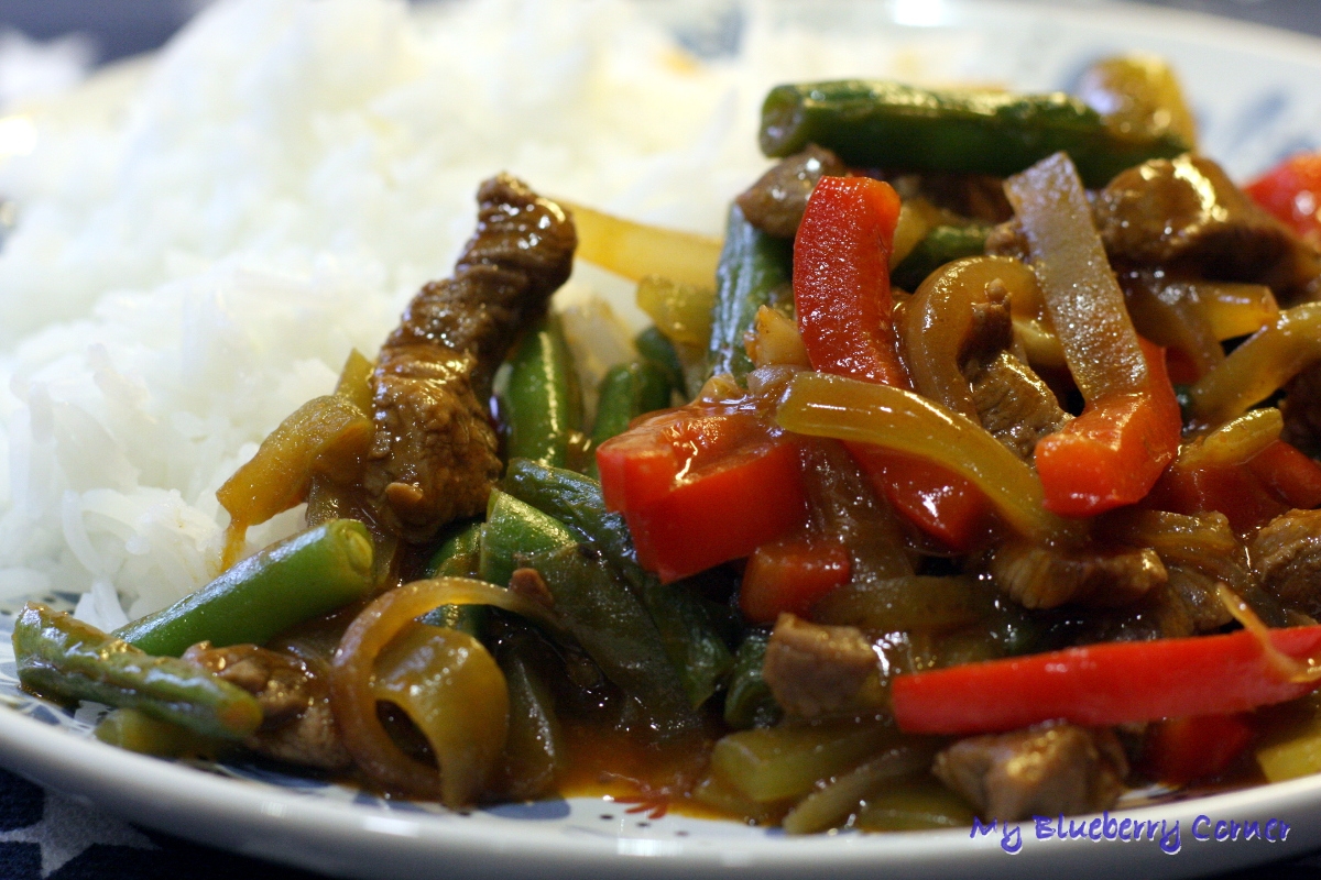 Wołowina z warzywami – sałatą łodygową, fasolką, papryką, cebulą – danie pełne smaku i koloru.