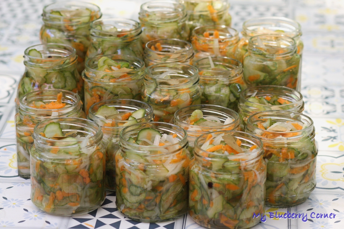 Słoiki z sałatką porządnie zakręcić, pasteryzować ok. 25 minut. Po ostudzeniu słoików ogórkowa sałatka z cebulą i marchewką jest już gotowa do jedzenia, chociaż najlepiej smakuje w czasie jesienno-zimowym.