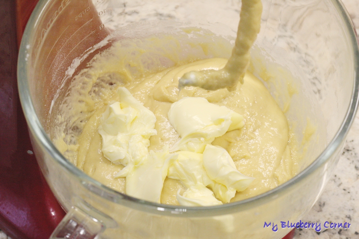 Po tym czasie dodać miękkie masło, ponownie wyrobić.