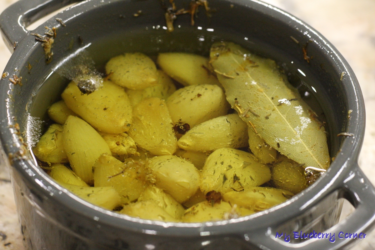 Konfitowany czosnek można przechowywać w naczyniu, w którym był przygotowywany, ale lepiej go przełożyć do szczelnie zamykanego słoika.