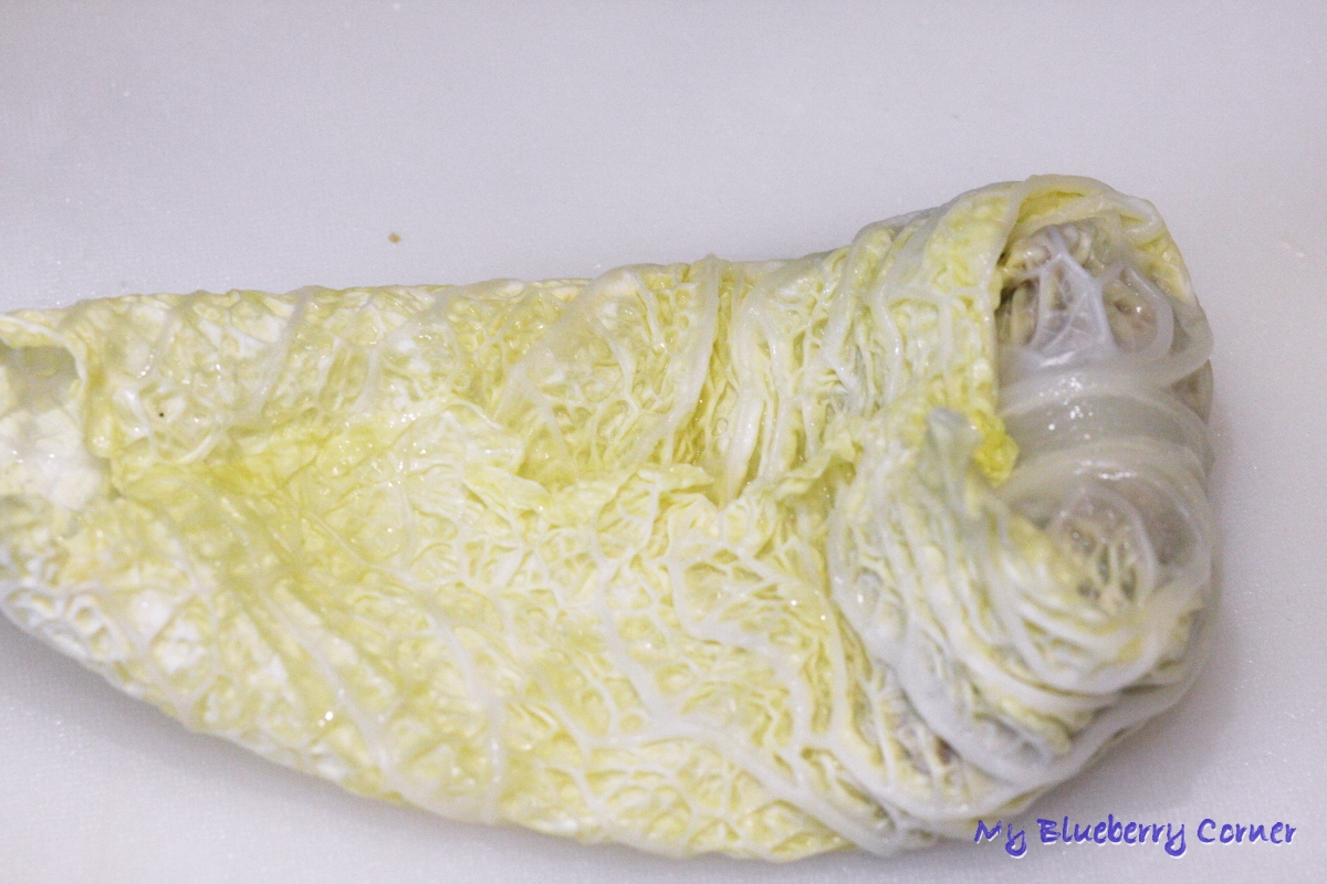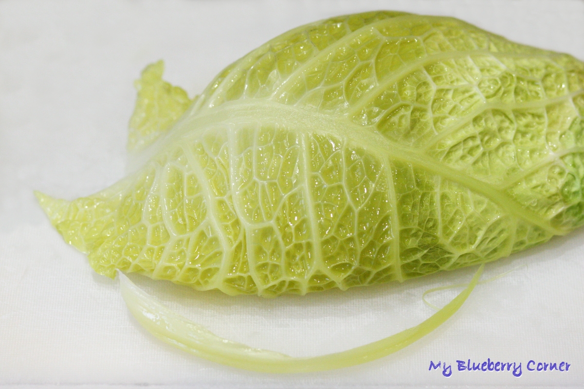 Z kapusty (w miarę możliwości) wyciąć głąb, przełożyć do garnka, zalać wodą i zagotować. Wyłączyć i zostawić do ostygnięcia.