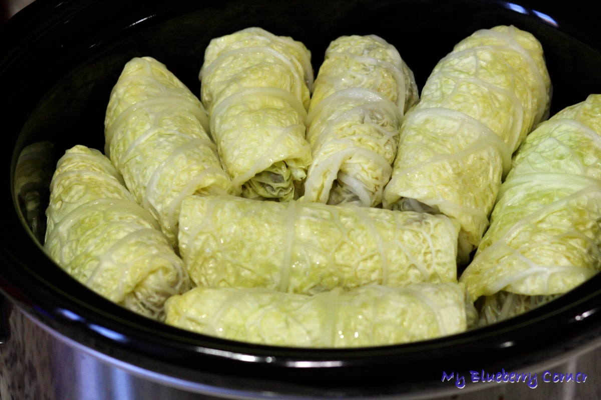 Wszystkie zwinięte gołąbki ułożyć w wolnowarze.