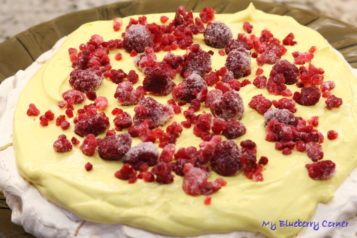 - kilka borówek amerykańskich albo malin na wierzch bezy
