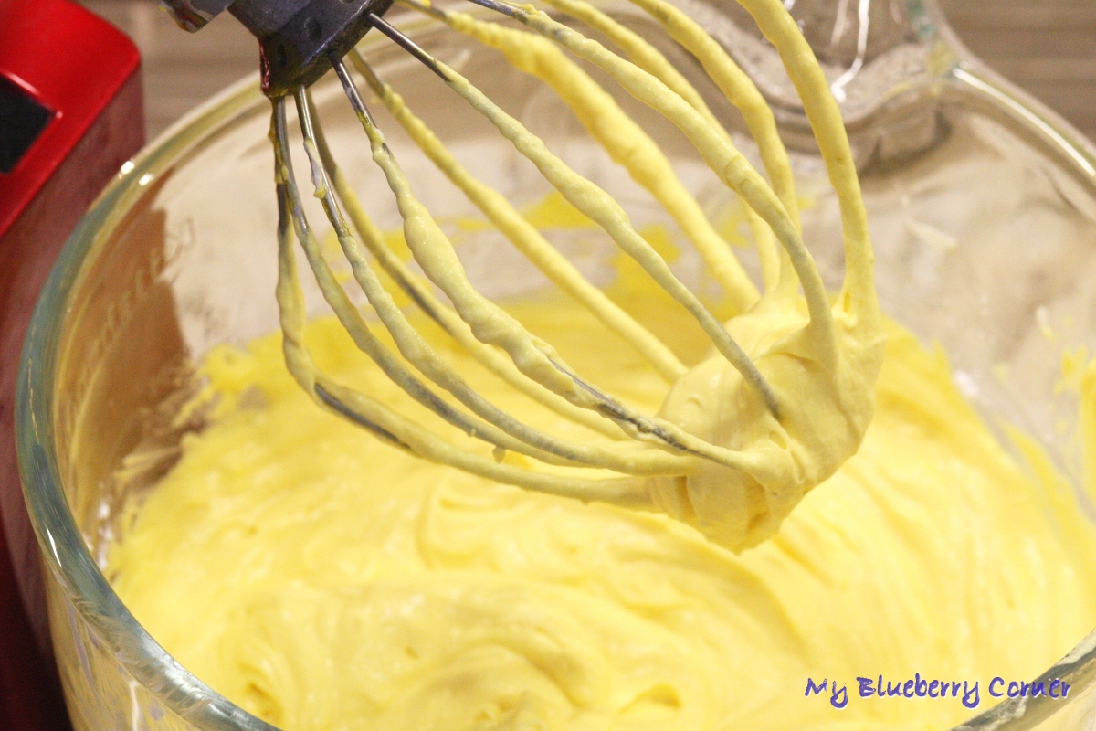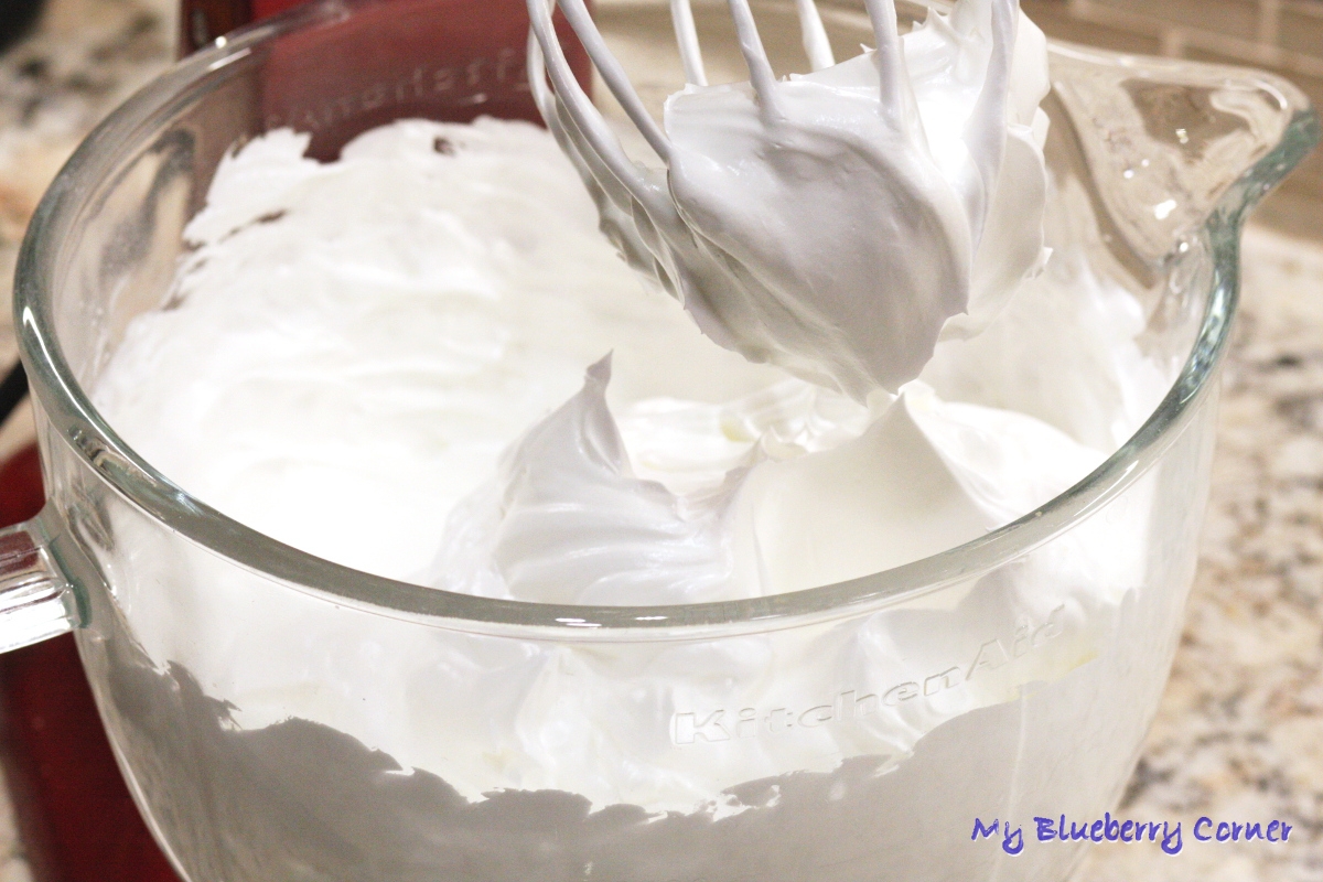 Białka ubić ze szczyptą soli. Jak zacznie robić się piana, dodawać porcjami cukier. Gdy cały cukier zostanie wmieszany ubijać jeszcze przez ok. 3 minuty, wyłączyć i odstawić bezę na 15 minut do odpoczęcia.