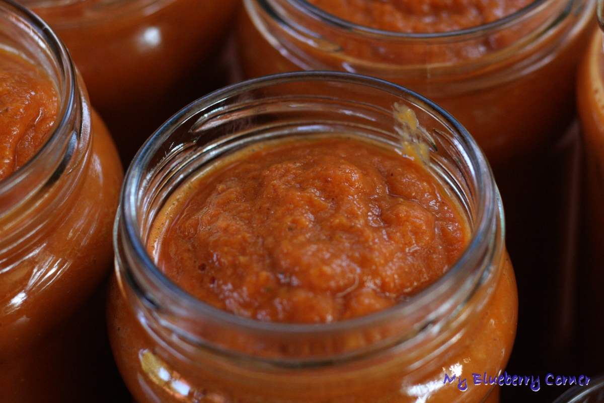 Słoiki zakręcić i zapasteryzować przez 20 minut. Po pasteryzacji słoiki odwrócić do góry dnem do czasu, aż sos w słoikach wystygnie. Tak przygotowany sos można przechować w piwnicy lub spiżarce przez całą zimę.