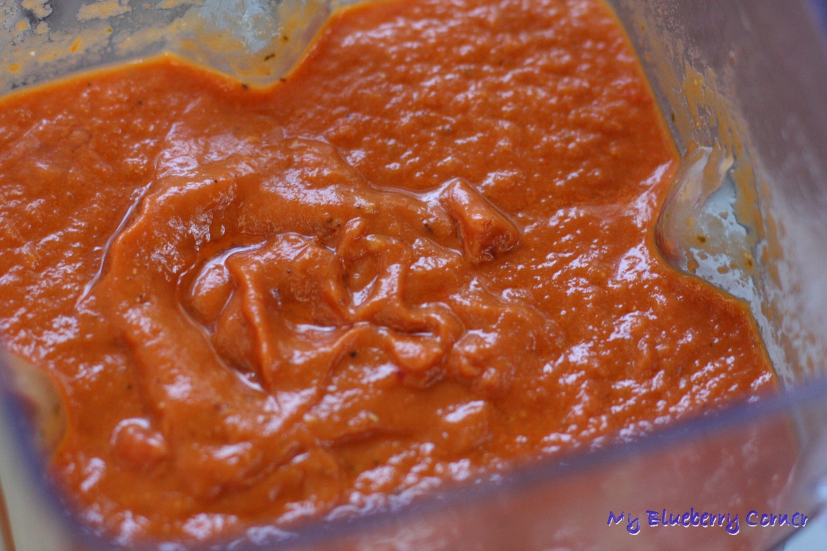 Po tym czasie zawartość blachy przenieść do blendera i porządnie zblendować na gładki sos.
