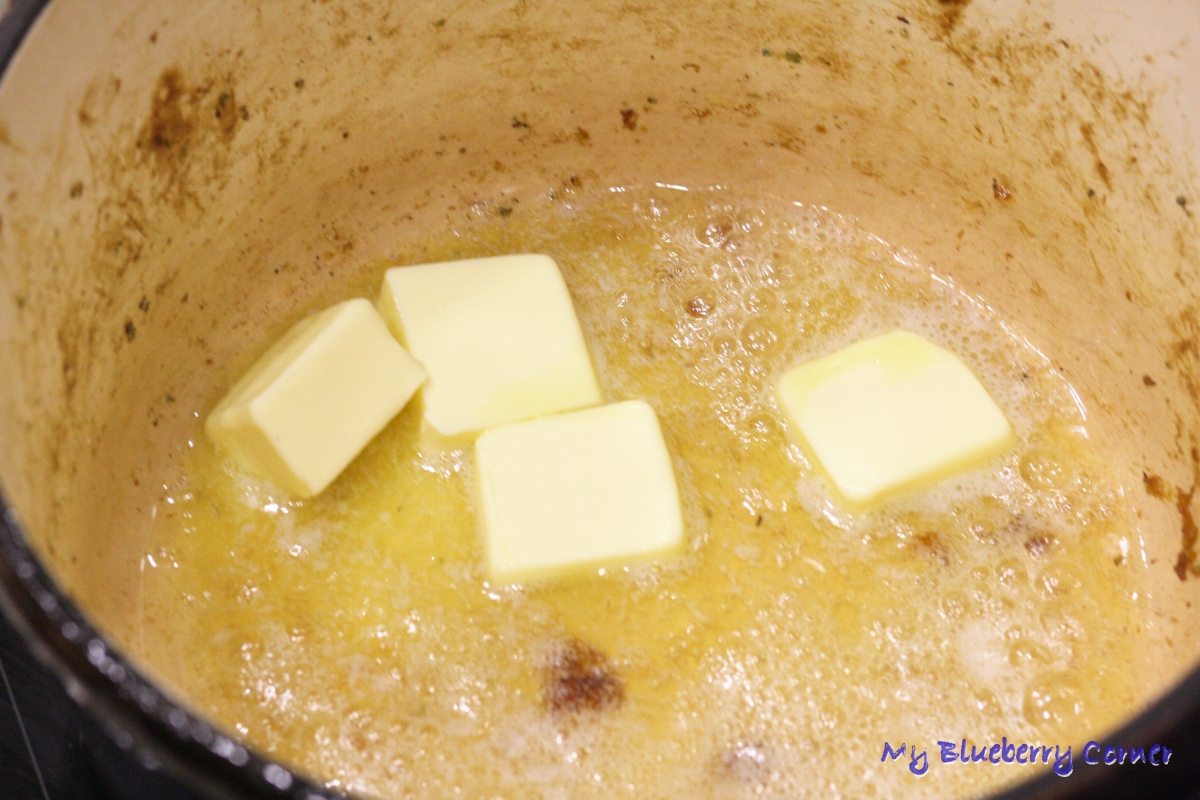 W to samo naczynie, w którym smażyliśmy dynię wlać olej, dodać masło, a gdy się rozpuści wrzucić cebulę, zeszklić.
