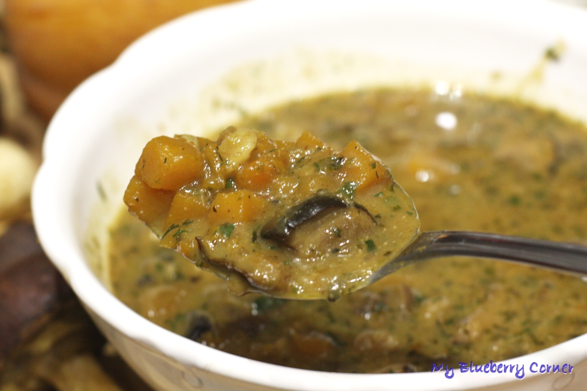 Pikantna zupa grzybowa z dynią miodową to pyszna, bezglutenowa polewka, która najlepiej smakuje, gdy jest podawana gorąca.