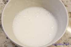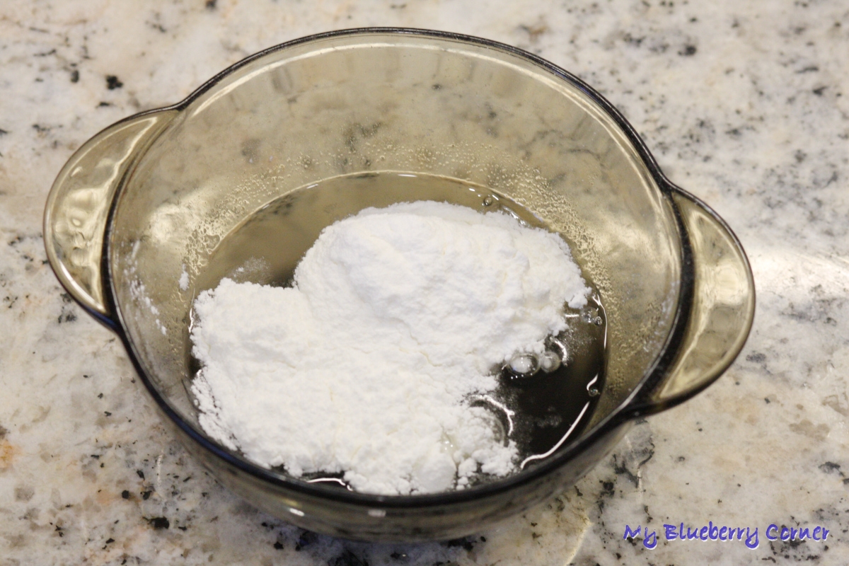 Wrzątek i zimną wodę wlać do niedużej miski. Wsypać połowę opakowania żelatynę-fix, porządnie razem zmiksować do całkowitego rozpuszczenia.